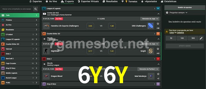 O 6Y6Y oferece uma grande seleção de opções de apostas em e-sports com probabilidades competitivas